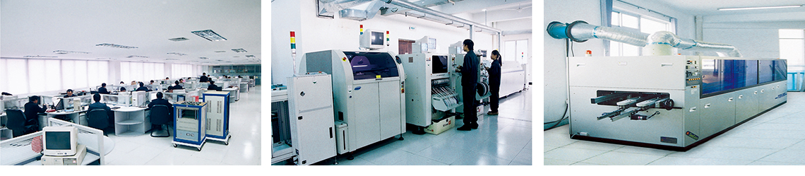 國際水平的全自動高速貼片生產(chǎn)線;全自動印刷機,高精度AOI檢測設備,無鉛波峰焊,高低溫老化室,UV噴涂線等;