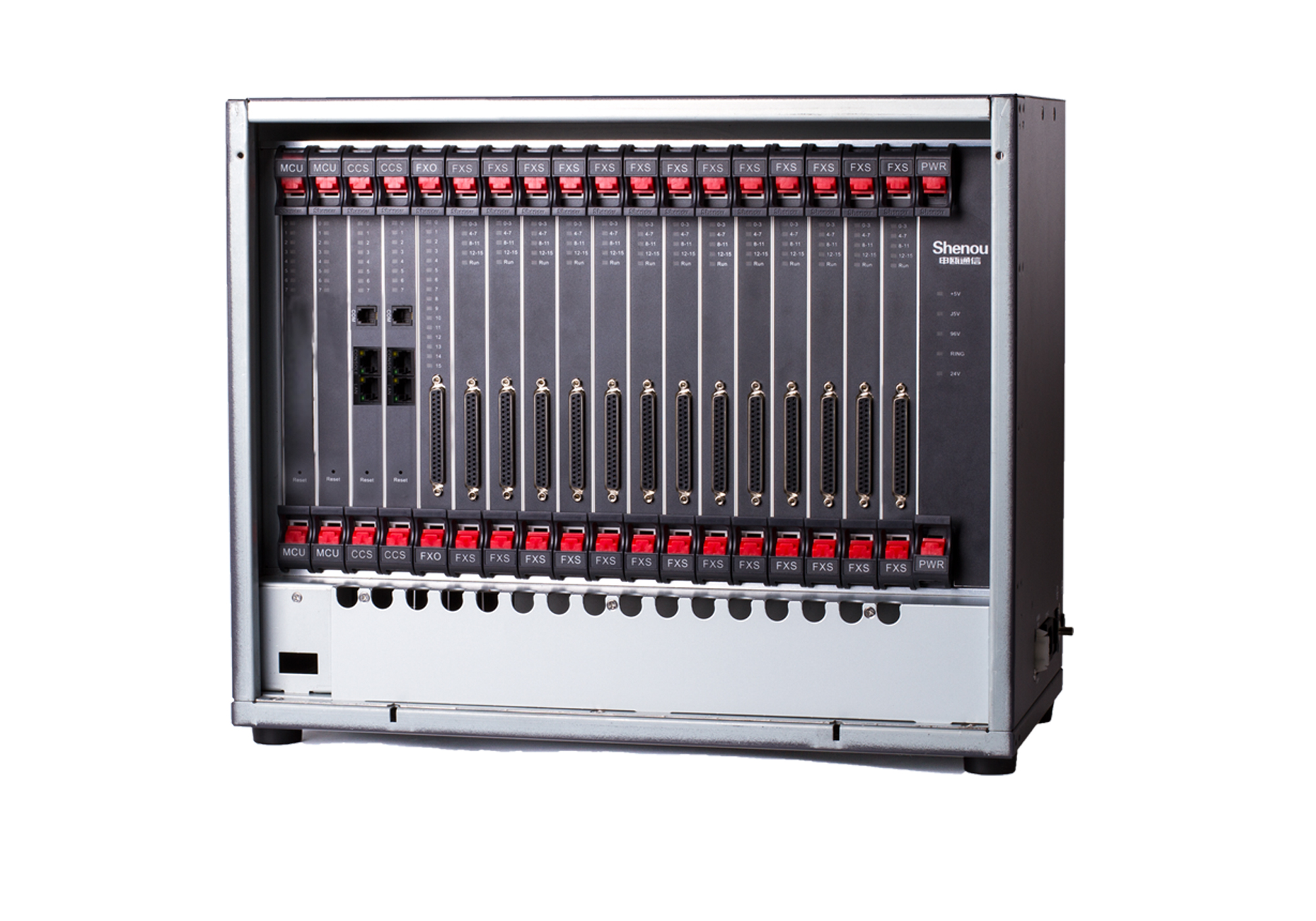 模擬分機FXS最大容量:單機內線FXS和外線FXO相加16-1536門,最大10000線。內線外線自由組合