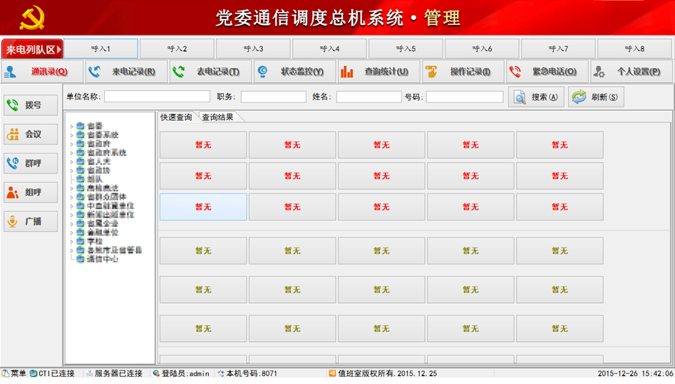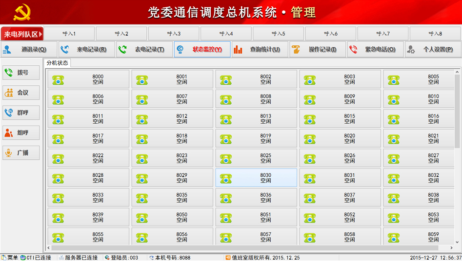 當(dāng)前位置:首頁(yè)>>產(chǎn)品中心>>融合通訊產(chǎn)品>>調(diào)度機(jī)、IP調(diào)度系統(tǒng)>>黨委通信調(diào)度總機(jī)系統(tǒng)